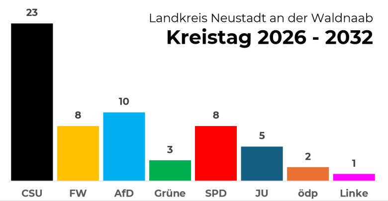 Der Kreistag des Landkreises Neustadt an der Waldnaab besteht aus 60 Kreisräten plus dem Landrat. Er wird auf die Dauer von sechs Jahren gewählt. Die Wahlperiode des Kreistags 2020 - 2026 endet zum 30.04.2026.